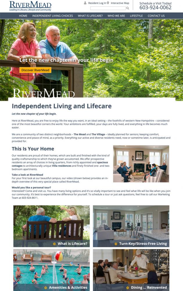RiverMead, located in Peterborough, NH is a 90 acre Lifecare and Retirement community offering a variety of premium independent living options in their vibrant community for the past 25 years.