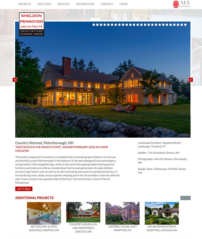 SHELDON PENNOYER ARCHITECTS is an award-winning architectural practice located in Concord, New Hampshire. They came to us for a new and modern site design that delivered more visual impact than the site they previously had. Utilizing their collection of quality images, we were able to create more of a "wow" factor by using large, full screen images throughout the site – including a large portfolio of projects.